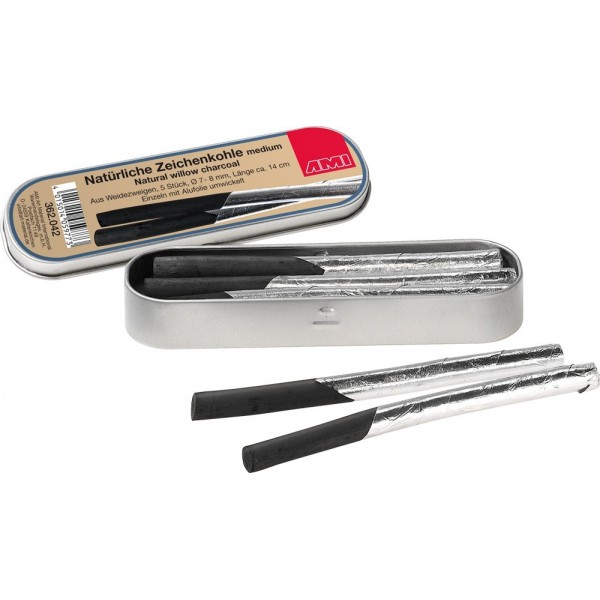 AMI Houtskool 5 dikke staafjes - Lengte 14 cm - Dikte 7 à 8 mm aantal