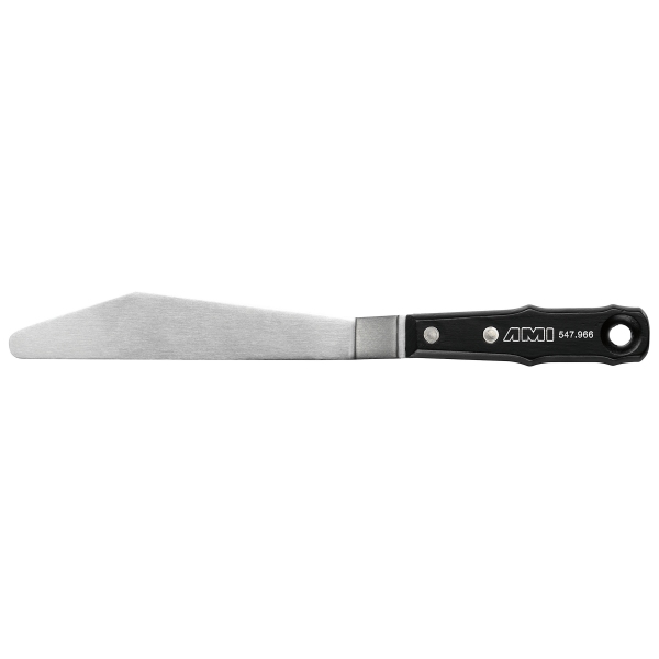 Schildersmes met elastisch stalen blad en zwart gelakte ergonomische handgreep.