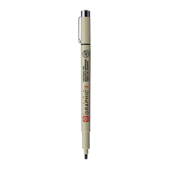 Pigma Graphic Calligrafiemarker 3 heeft een tapse kant van 3,00 mm speciaal voor Kalligrafie.