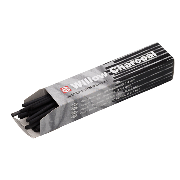 Doosje met 30 zeer dunne houtskoolstaafjes met een doorsnede van 3 – 4 mm.