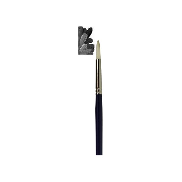 Dit met zorg gemaakte en met de hand gevormde penseel voor acryl- en olieverf heeft een stugge maar tegelijk zeer veerkrachtige haarbundel.